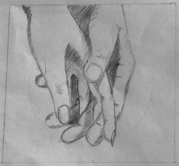 The second panel that aptly links to our music video is the inside left panel. This shows two hands touching. This is a link to our second element, of our two dancers that slowly touch more and more and the music video progresses.